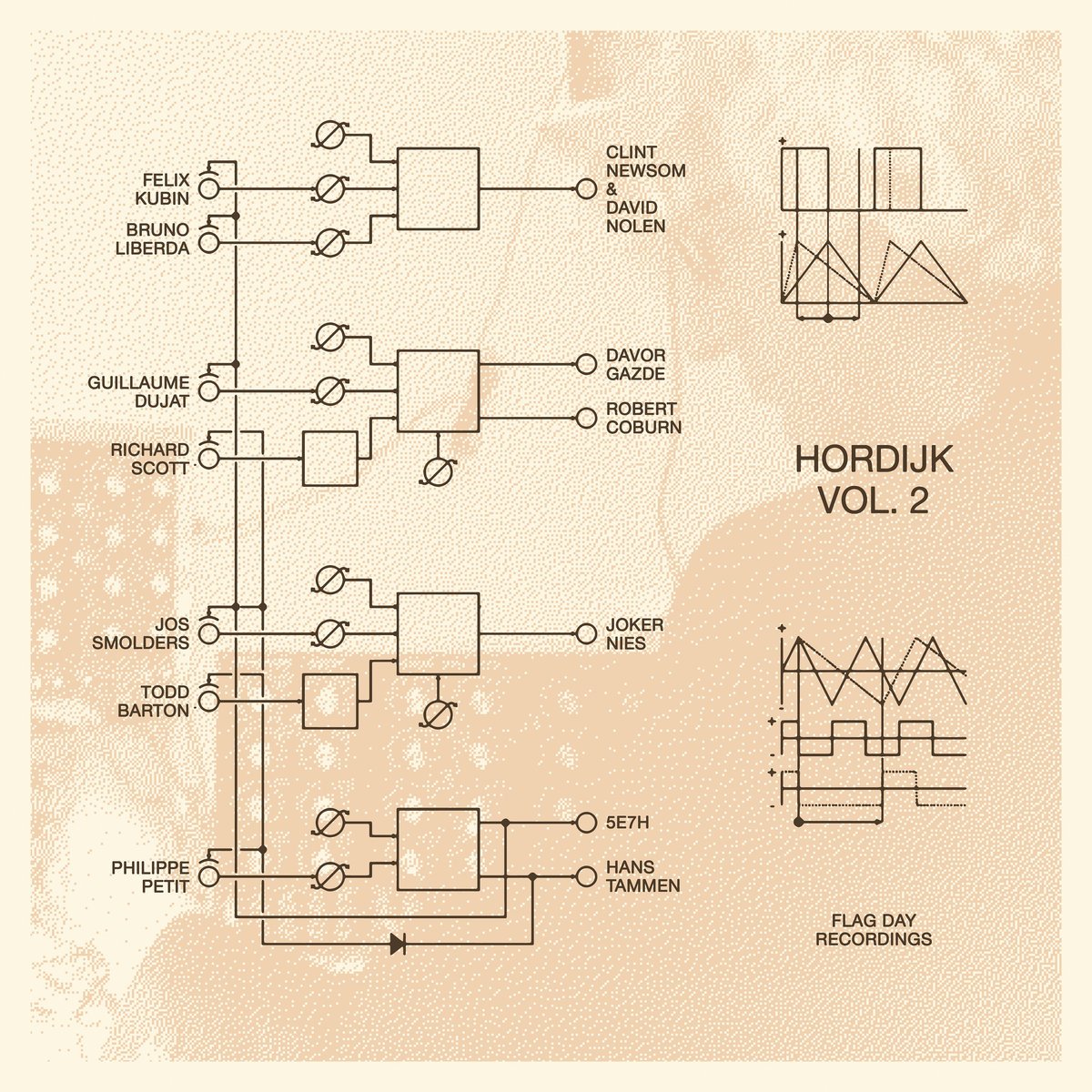 The Hordijk community has members from all over the planet and it’s a bit like a secret society; many don’t know any of the other users. After extensively trawling social media, I was delighted to find so many captivating artists dedicating their life to the sound of electrons. Just like Rob had. Not all were willing to contribute, simply because the reason they owned a Hordijk instrument had to do with its sound and quirkiness. I am glad many others contributed. This compilation presents a much more comprehensive array of works using the Hordijk designs, ranging from the wild escapades of 5e7h to the contemplative work of Robert Coburn.